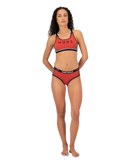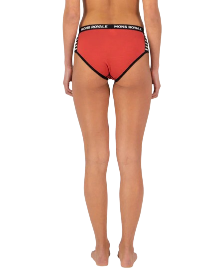 Boxeri Mons Royale Femei Sylvia Cranberry – model boyleg din lana Merino Air-Con 140gsm, slim fit, respirabil si confortabil, perfect pentru activitati outdoor sau uz zilnic.